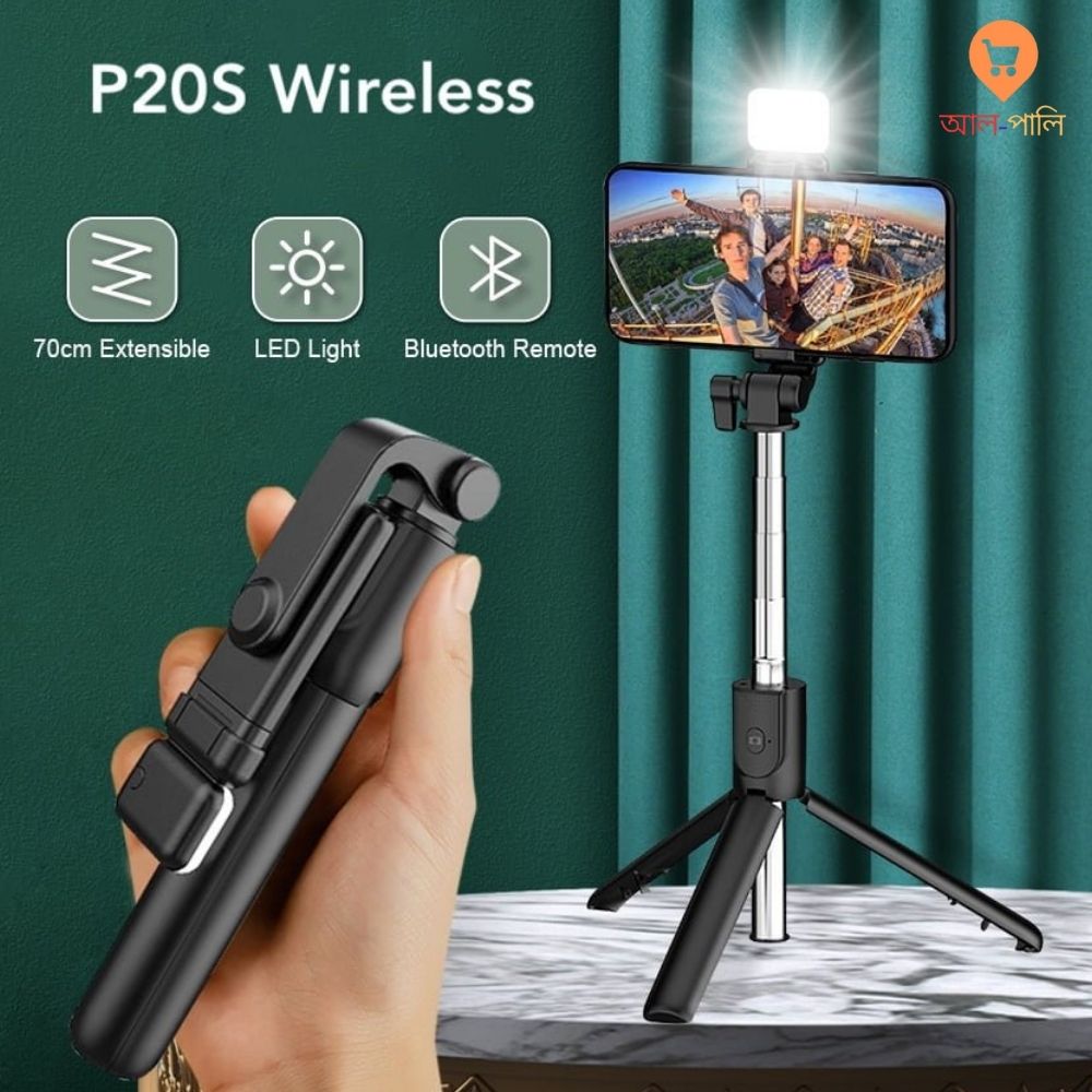 সেলফি, ভ্লগিং আর ভিডিও শুট করার জন্য বেছে নিন P20S 3-in-1 Selfie Stick। এর বিশেষ সুবিধা হলো এটি একইসাথে Selfie Stick এবং Tripod হিসেবে ব্যবহার করা যায়। এতে থাকা LED Light অন্ধকার বা অল্প আলোতেও আপনার ছবিকে উজ্জ্বল ও ঝকঝকে করবে। ব্লুটুথ রিমোট কন্ট্রোল সুবিধার এই প্রিমিয়াম গ্যাজেটটি আজই অর্ডার করুন